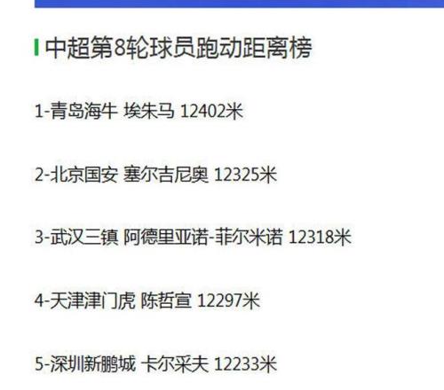排名第三的是武漢三鎮(zhèn)外援阿德里亞諾·菲爾米諾(12318米),但是三鎮(zhèn)本輪客場0-4慘敗給上海海港,戰(zhàn)術(shù)完全被衛(wèi)冕冠軍針對。個人努力難敵整體潰敗。值得一提的是,海港傷兵滿營,雙外援出戰(zhàn),打敗了五外援三鎮(zhèn),5月1日,武漢三鎮(zhèn)將客場挑戰(zhàn)天津津門虎,保級對手直接對話!